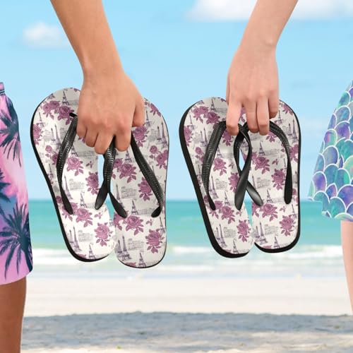 ALAZA Retro Eiffe Tower Rose Flip Flops for Women Fashion Beach Slippers Comfort Mens Flip Flops Non-Slip Rubber Shower Slippers Sandal for Hotel Travel Sport,XS 4