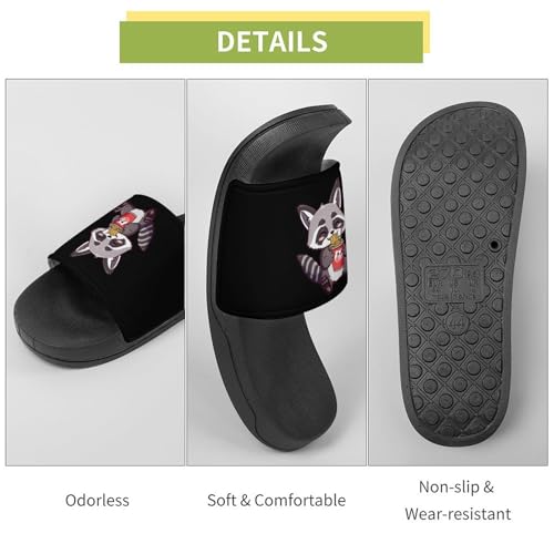 Raccoon Eating Instant Noodle Cup Unisex Shower Shoes House Slippers Non-Slip Indoor Bathroom Shoes for Pool Beach 43 (265mm) 1