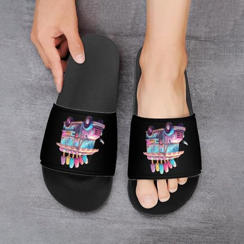 Ice Cream Truck Driver Unisex Shower Shoes House Slippers Non-Slip Indoor Bathroom Shoes for Pool Beach 46 (287mm) 6