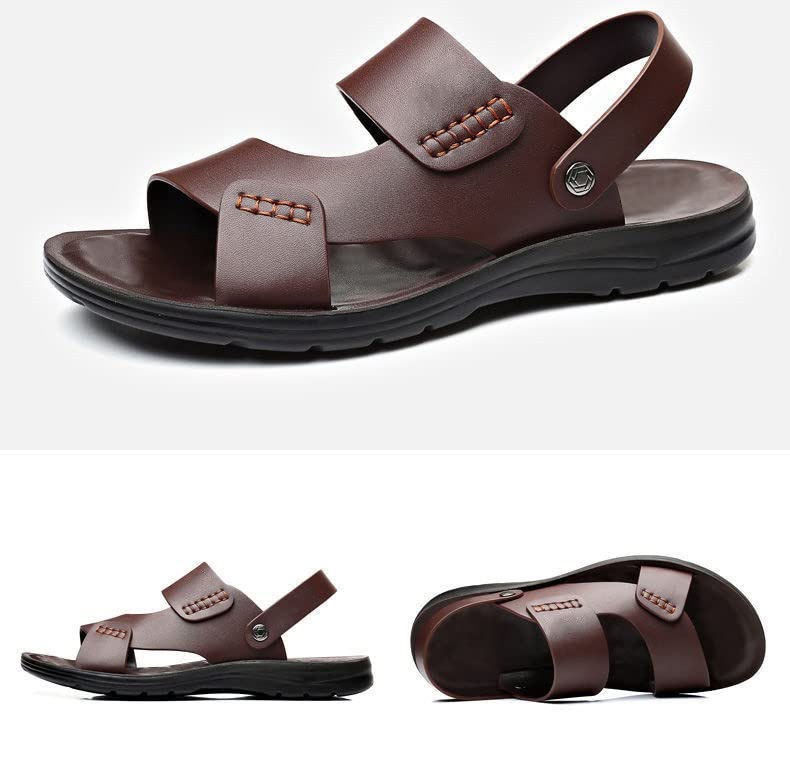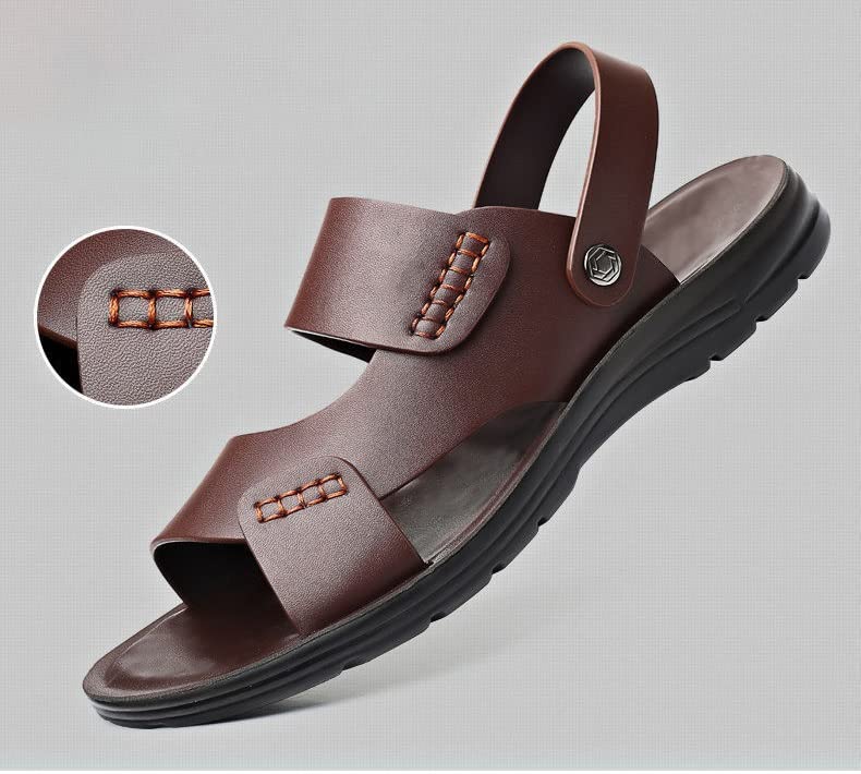 Men's Sandals Comfortable Soft Leather Men Brown Beach Slippers Male Sandalies 7
