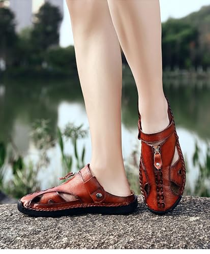 • Breathable And Drying: Men sandals made of soft leather, caress your delicate skin . Leather upper for breathable and quick-dry; air holes and Descripción del producto