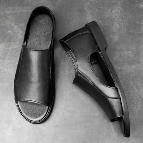 Men's Genuine Leather Cutout Water Shoes Slip On Flat Comfortable Open Toe Outdoor Casual Beach Light Weight Fisherman Sandals 6