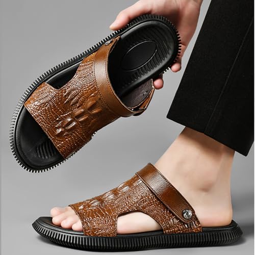 • 【High-quality material】This casual sandal is made of soft second-layer cowhide. The texture is soft and elastic, and it has good breathability. The rubber sole is soft and wear-resistant, and the clear texture design has a strong grip, ensuring comfortable wearing and long-lasting use.