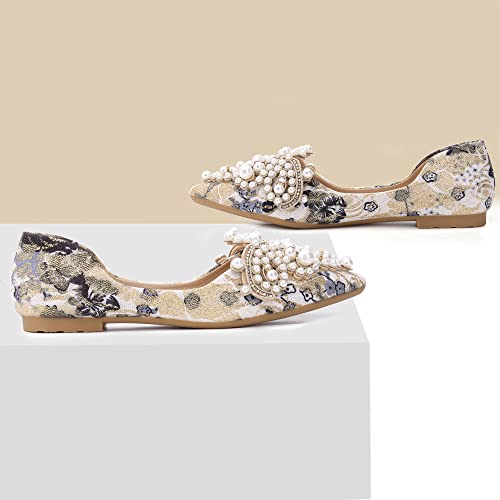 Pearl Decoration Women's Flat Bottom Pointed Toe One Step Shoes 7