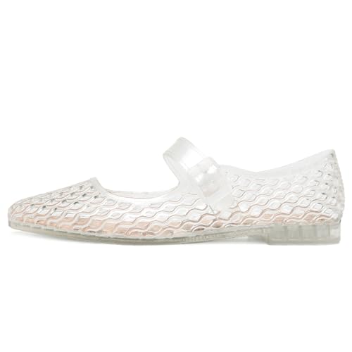 Jelly Flat Shoes for Women Square Toe Mesh Ballet Flats Clear Beach Mary Jane Jellies Comfortbale Ballerina with Buckle Strap 7