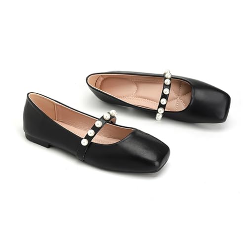 Flats for Women Round Toe Pearl Strap Dressy Mary Jane Shoes Ladies Flats PU Leather Office Travel Shoes 1