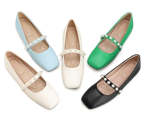 Flats for Women Round Toe Pearl Strap Dressy Mary Jane Shoes Ladies Flats PU Leather Office Travel Shoes 6