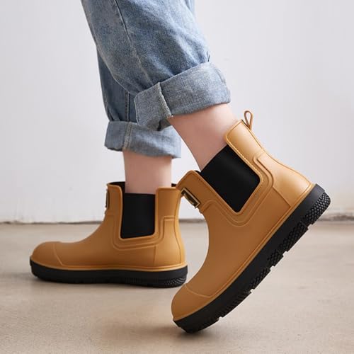 • 【100% Waterproof】:These Short Rain Boots are made of soft PVC material and are 100% waterproof. The ankle-length design and thickened upper effectively protect your feet from rain and mud on rainy days, keeping them dry.