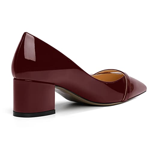 ROSERWISH Womens Party Dress Slip On Patent Pointed Toe Chunky Low Heel Pumps Shoes 2 Inch 5