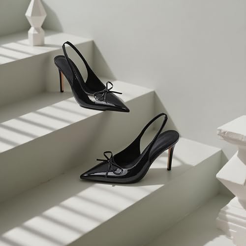 Eteridrey Bow Stiletto High Heels for Women Elastic Strap Pointed Toe Slingback Heels Summer Sexy Pumps Wedding Party Dress Shoes 6