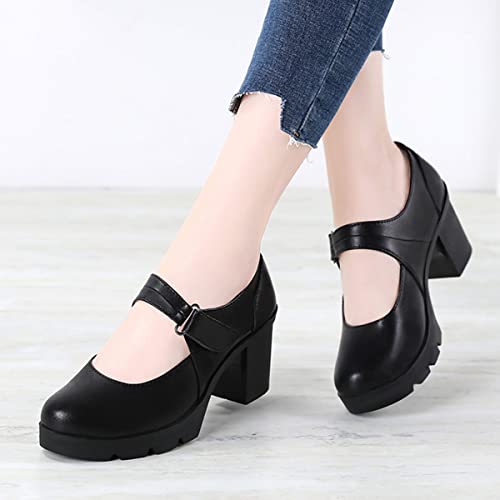 • [Item Features]: Women's chunky block heel mary jane platform pumps dress shoes, high-quality synthetic fabric, comfortable and durable, convenient buckle ankle strap design easy slip on and off. Runs true to size, keep you comfy in all days.Available in black and brown 2 colors.