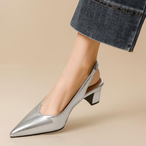 • CLASSIC DESIGN: These pointy slingback heels are designed with classic slingback design, a pointy toe, a chunky heel,and a rubber sole. They are comfortable and wearable.