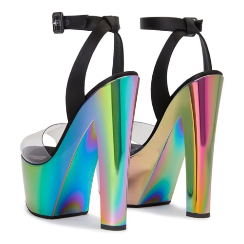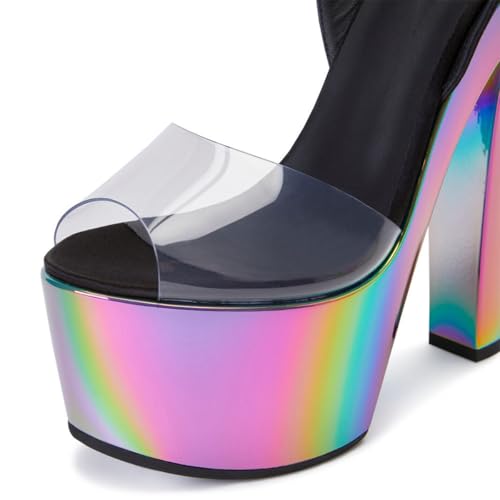 • [Platform High Heel Sandals] Ideal for everyday wear and breathable lining for extra comfort. These super high heel sandals feature an open peep toe design, vegan/crystal/studded rivet platform, chunky block heel, and ankle strap design, making them a must-have in every woman's wardrobe.