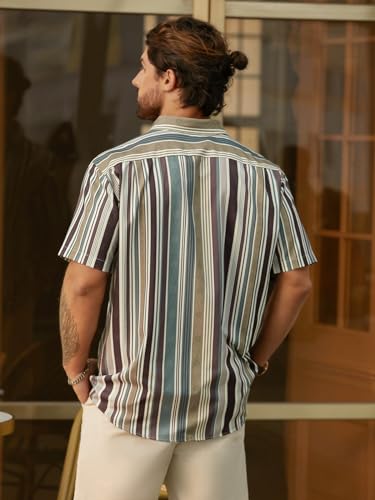 Hardaddy Men's Striped Shirts Casual Short Sleeve Button Down Summer Hawaiian Shirts 4