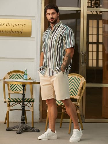 Hardaddy Men's Striped Shirts Casual Short Sleeve Button Down Summer Hawaiian Shirts 6