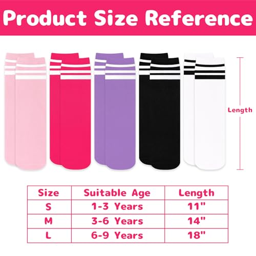 • STYLISH STRIPES & BRIGHT COLORS: Come in classic three-stripes and vibrant colors, our youth softball socks will be a highlight in kid's overall look! As wonderful sports accessories, our boys soccer socks and girls soccer socks can easily match with kid's team-sports sportswear and show their passion on the field. In addition, whether paired with school uniforms, daily shorts, skirts, jersey or even Halloween cosplay costumes, these girls softball socks will capture attention in the crowd!
