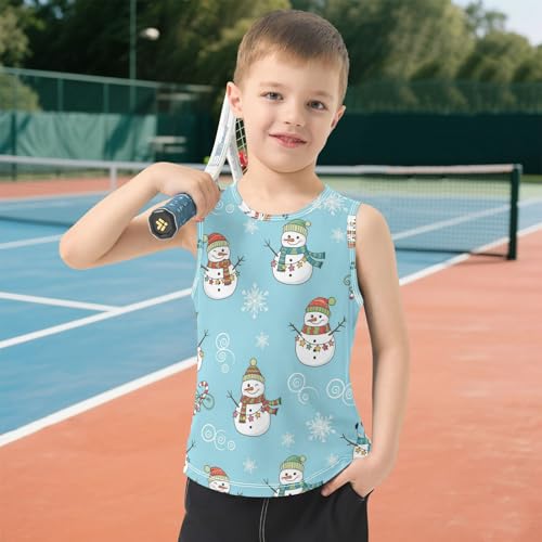 J JOYSAY Christmas Snowman Blue Boys Tank Top Sleeveless Muscle Shirts Quick Dry Sport Workout Active Kids T-Shirts 3-15T 3