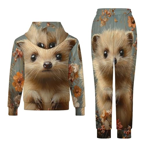 Boys Girls Sweatshirt Pullover Hoodie & Pants Kid Active Sweatsuit Tracksuit, Hedgehog Vintage 5