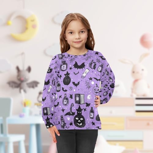 JUNZAN Halloween Pumpkin Cat Witch Cute Spooky Big Girls Pullover Hoodie Crewneck Boys Sweat Shirt Athletic 4T 6