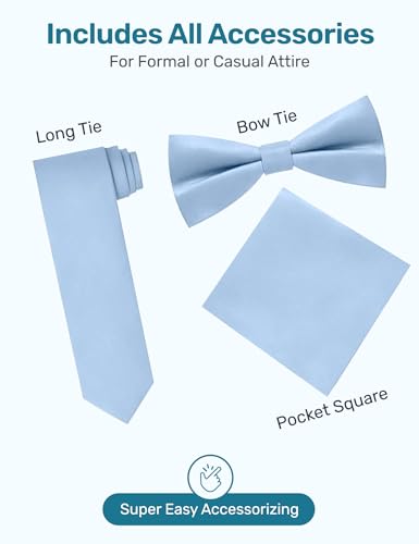 • COMPLETE SET FOR ANY FORMAL OCCASION: This elegant boy's 4-piece royal blue vest set includes a sleek satin vest, a stylish bow tie, a classic neck tie, and a matching pocket square, providing a full ensemble for weddings, parties, or any formal event.