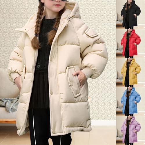 Length Hooded Winter Coat for Kids Girls Solid Color Zip Up Padded Puffer Jacket Toddler Boys Button Down Warm Outerwear 6