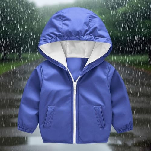 Boys Girls Rain Jacket Kids Zip Up 𝗛ooded Windbreaker 𝗪aterproof Outerwear Long Sleeve Button Down Coat Casual 4