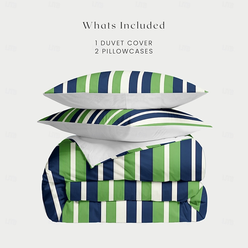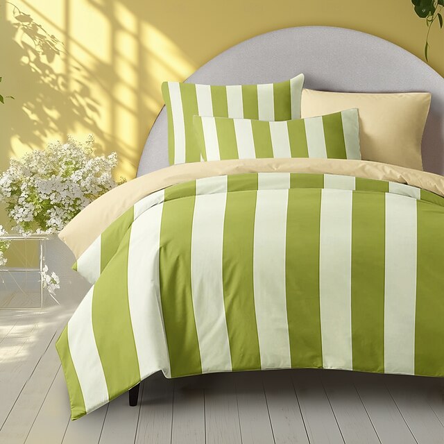 Green Stripe Pattern Duvet Cover Set Comforter Set 2/3PCS Luxury Cotton Bedding Set Home Decor Bedding Gift King Queen Full Size Queen King Size 12
