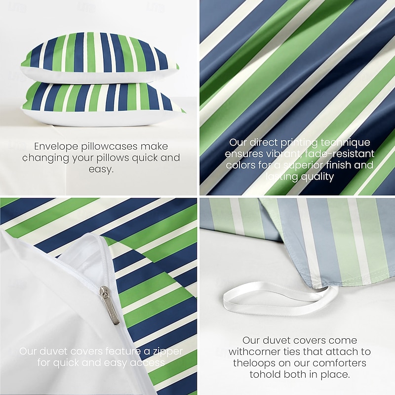 More information about Green Stripe Pattern Duvet Cover Set Comforter Set 2/3PCS Luxury Cotton Bedding Set Home Decor Bedding Gift King Queen Full Size Queen King Size