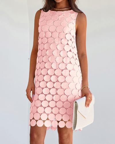 • FEATURE: S=US 4-6, M=US 8-10, L=US 12-14, XL=US 16-18, XXL=US 20 / Summer Dresses For Women 2025 / Crew Neck / Sleeveless / Circle Embroidered Dresses / Hollow Out Dress / Mini Dress / Button Keyhole Back / Solid / Lightweight