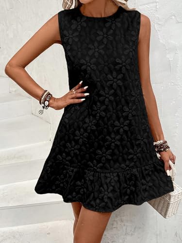 SOLY HUX Women's Ruffle Hem Sleeveless Tank Dress Round Neck Casual Jacquard Hem Smock Summer Mini Dresses 3