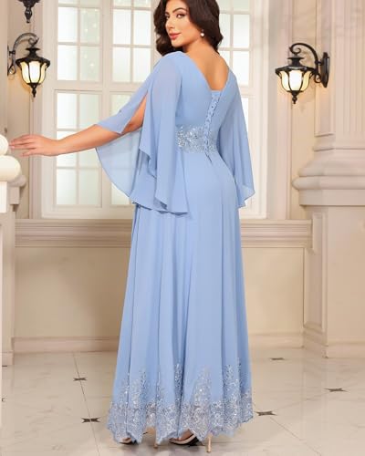 • Features:Chiffon Mother of The Bride Dresses with Sleeves,V-Neck Chiffon Sequin Applique Mother of Groom Dress for Wedding, A-line Plus Size Chiffon Formal Wedding Guests Dress,Mother Exquisite Prom Evening Dresses ,Floor Length,Zipper Back,Built-In Bra.