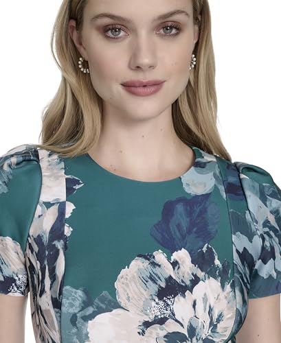 HOT ! Calvin Klein Women's Short Sleeve Floral Print Scuba Crepe A-line Dress