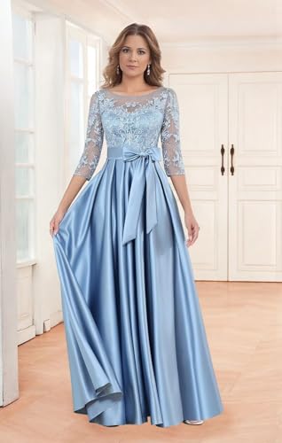 • DESIGN:This aqua mother of the bride gown plus size is a half sleeve maxi dress, the satin lace applique and bow design to make you stand out and shine in wedding,formal and special occasions