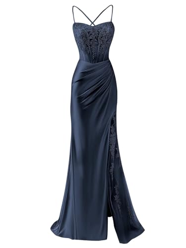 More information about Mermaid Satin Prom Dresses 2025 Lace Appliques Corset Formal Evening Gown with Slit