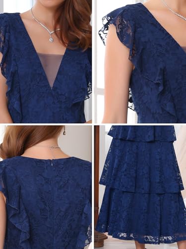 Women's Lace Dress for Wedding Guest Cocktail Evening Ruffle Cap Sleeves Tiered A-Line Maxi Dresses 4