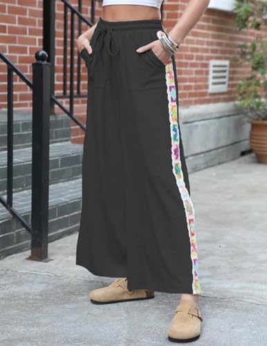 • Design: These relaxed fit pants are made of comfortable sweatpant fabric, loose, relaxed wide leg silhouette, high elastic drawstring waist, convenient front patch pockets, cute crochet detail on the side, finished hem with raw edges at the bottom.