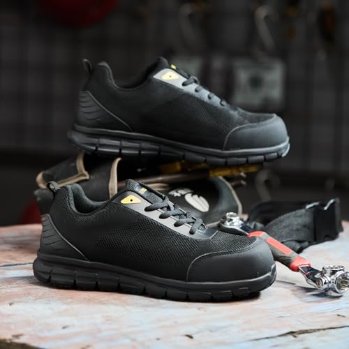 • Wide work shoes: Wide Toe Box Design composite toe sneaker,Roomy toe box offers ample space for toes to spread freely & naturally. mesh lining provides breathability and low-top lace-up design creates a sleek, sporty look with easy ankle mobility.