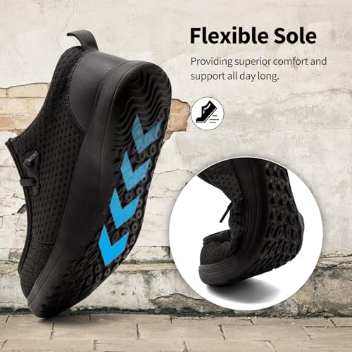 • 【Roomy Toe Box for Enhanced Comfort and Safety】 Designed with a wide toe box, these steel toe work shoes for men allow your toes to spread naturally, reducing pressure and preventing discomfort during long hours of wear. The extra space also helps accommodate wider feet or swelling throughout the day, ensuring a more comfortable and secure fit.