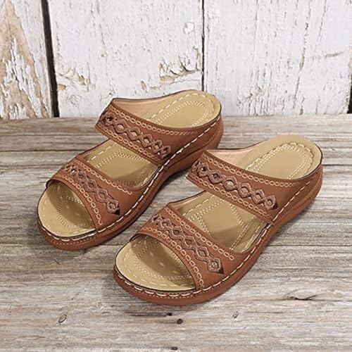 Womens Sandals Dressy Casual Comfortable with Arch Support,Peep Toe Platform Sandals Shoes Womens Orthotic Platform Loop Hollow Wedges Flip Flops Casual Comfy Walking Shoes 5