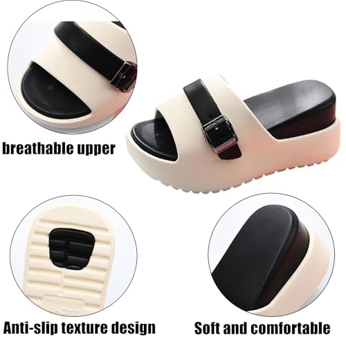 Women's Platform Thick-Soled Height Increasing Non-Slip Slippers Comfortable EVA Sole Open Toe with Buckle Decorate Chunky Heeled Casual Sandals 5