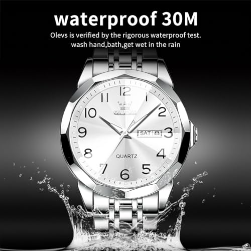 • OLEVS SILVER WATCHES for MEN:Men's watches with large numbers,wrist watches for man, we will help you solve any problem for you during you use the olevs watch ASAP.