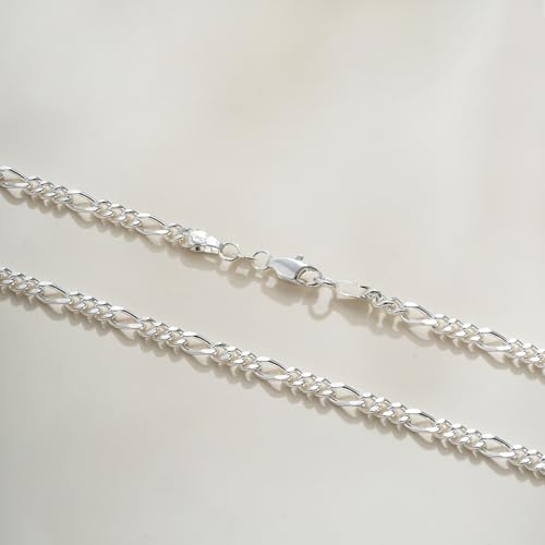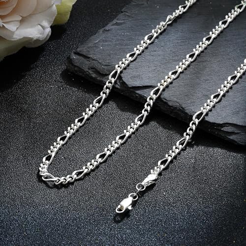 925 Sterling Silver Over Figaro Chain, Dianty Diamond Cut 4mm Silver Chain for Men Jewelry Gifts for Men Father Boyfriends 5