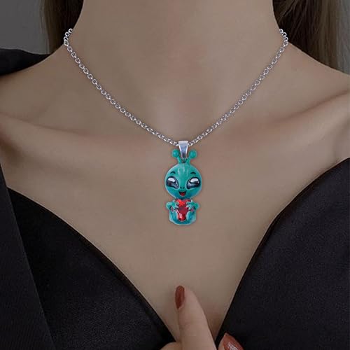 • FEATURES : Add a Touch of The Cosmic to Your Style with our Friendly Little Green Man - Alien Necklace Inspired by Extraterrestrial Life and The Mysteries of The Universe, With a Cute and Playful Expression, Holding Red Heart Stone That Will Melt Your Heart and Make You Fall in Love with It.