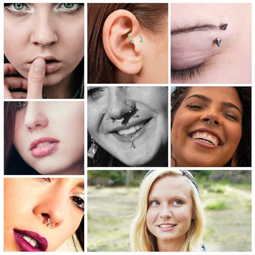 • 【Multiple applications】piercing jewelry this piercing jewelry can be used as a nose septum ring, lip ring hoop, ear piercing, daith earrings, cartilage hoop, tragus earring hoop, helix hoop, snug hoop, rook barbell, piercing jewelry, septum retainer, horseshoe septum jewelry and other body piercing jewelry 18g septum ring.