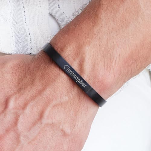 EVE'S ADDICTION Engravable Men's Brushed Stainless Steel Rectangle Cuff Bracelet - Gifts for Dad 5