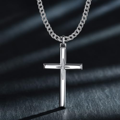 More information about 925 Sterling Silver Cross Necklace for Men Women with Stainless Steel Cuban Chain 22"+2"