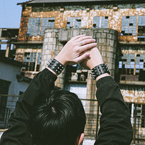 MILAKOO 2 Pcs Black Wristband Cuff Belt Bracelet Bangle Leather Rope Black Punk Rock Bracelet 6-8" 4