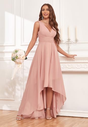 • Features: V Neck Chiffon Bridesmaid Dresses for Wedding, High Low Bridesmaid Dresses for Women, A Line, Pleated/Ruched Bodice, with Pockets, Corset Lace up Back, Sleeveless