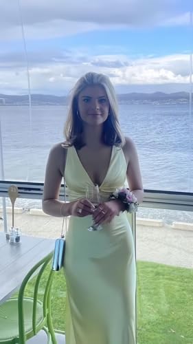 More information about Cudiew Satin Bridesmaid Dresses Corset V Neck Prom Dresses Teens Back Self Tie Formal Evening Party Gown for Women