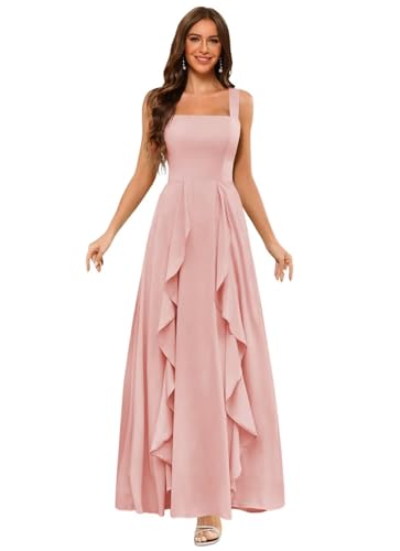 HOT ! Clothfun Ruffle Chiffon Bridesmaid Dresses Long with Pockets 2025 Square Neck Evening Gown with Slit for Women CY029